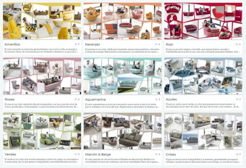 por colores y por tipologías de sofás, creando una nueva sección en la web para