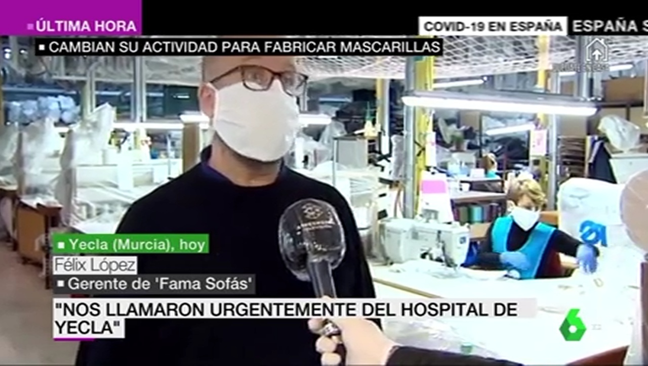 Con esos días de incertidumbre, la fabricación de sofás detuvo en seco y solo se producían mascarillas, en un principio para el hospital, pero conforme iban pasando las horas, nos iban llegando cientos de mensajes de ayuda de personas o colectivos que necesitaban mascarillas.