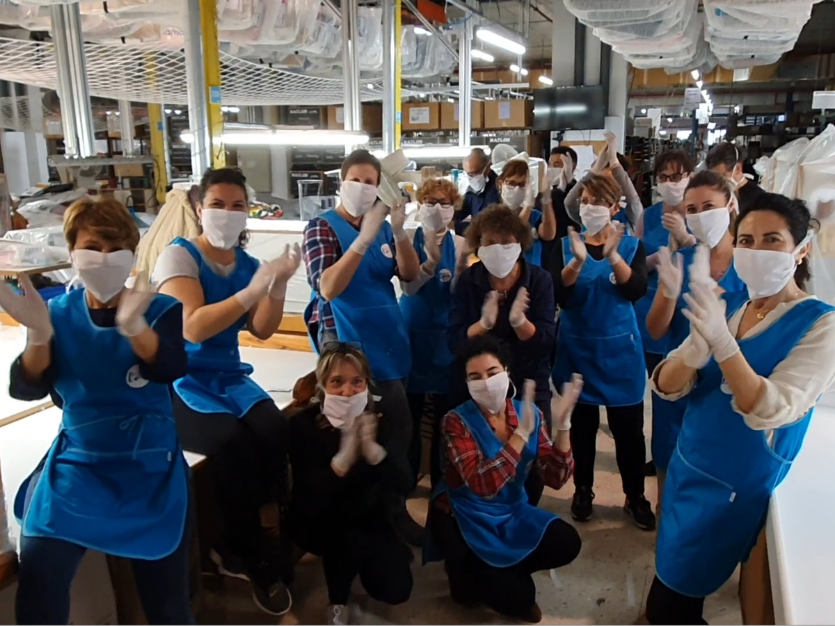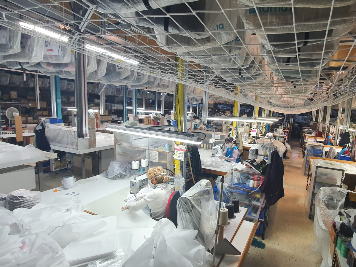 Tras ponerlo todo en marcha, hubo un parón inesperado a pocas horas de comenzar, pero fueron las cosedoras de Fama, las impulsoras de que continuara la fabricación de mascarillas con la ayuda inestimable del personal de extendido y corte.