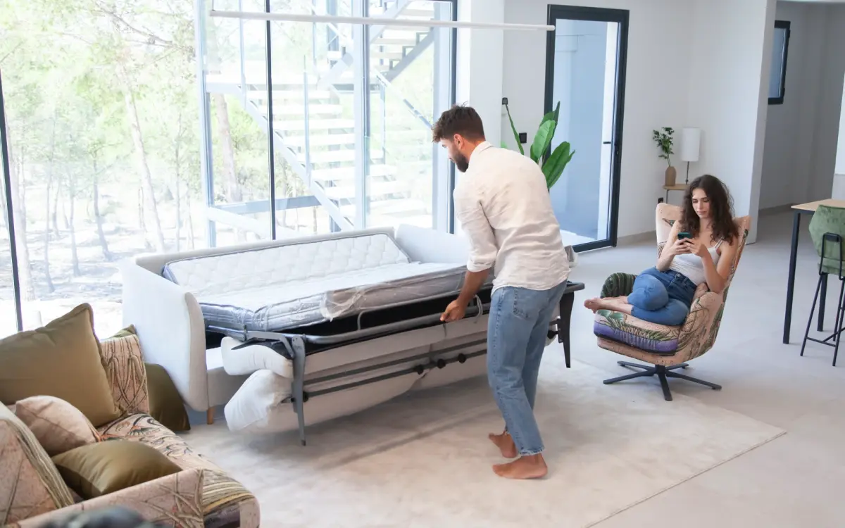 Dentro del modelo Helsinki, presentamos este nuevo sofá con mecanismo cama. Hemos conseguido mantener la gran comodidad, además del diseño elegante y ligero del sofá Helsinki, ya que no parece un sofá cama a simple vista. Esta nueva versión cama aporta un gran valor añadido al modelo, ya que podemos alojarlo en cualquier salón o sala de estar y tener la opción de convertirlo en cama cuando lo necesitemos.