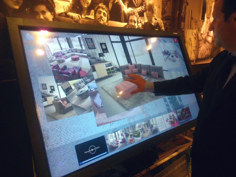 Bei dieser Abhaltung könnten wir die Sofas, Armsesel und exklusive Stoffe Kollektion 2014 sehen. Als Neueste haben wir in unserem Stand unseren Multitouch Schirm mitgebracht. Das hat uns erlaubt, unsere Kollektion 2014 auf einer neuartigen und intuitiven Weise zu schauen zeigen.