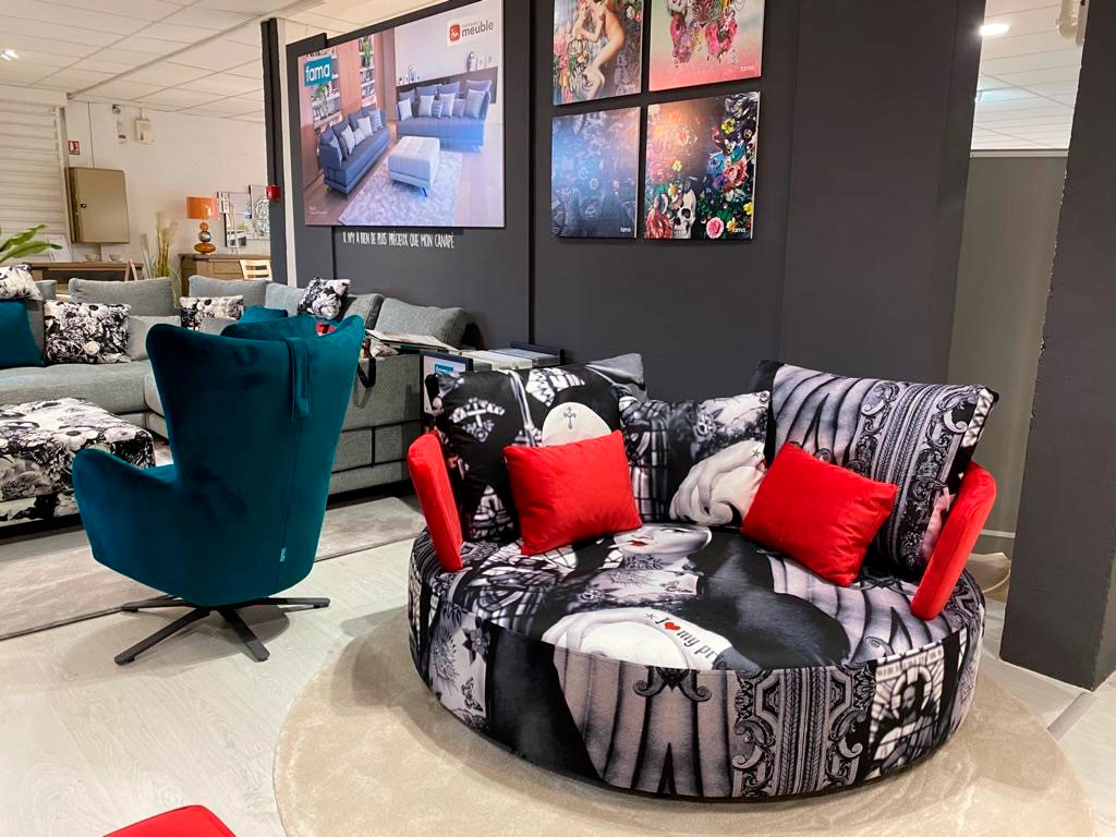 Jetzt können Sie unser neues Fama-Studio, an Hand Monsieur Meuble, in Chaumont (Frankreich) besuchen. Entdecken und probieren Sie unsere Neuheiten mit unglaublicher Bequemlichkeit und Design.