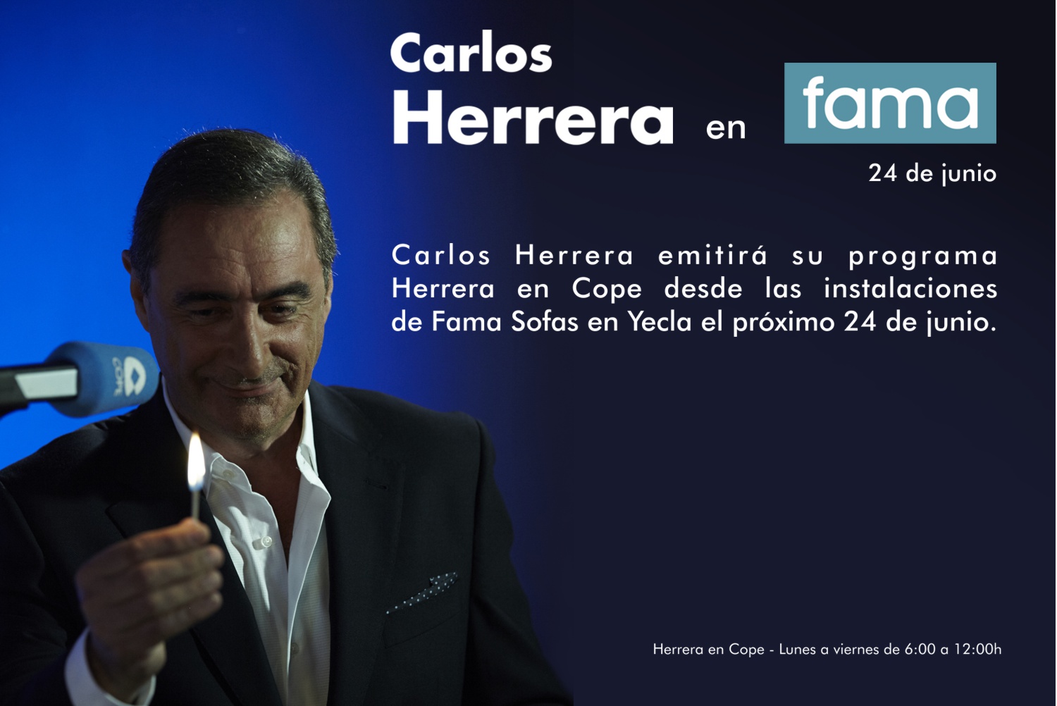 Next 24th June, Carlos Herrera will broadcast his “Herrera in Cope” program live from the premises of Fama Sofas in Yecla.