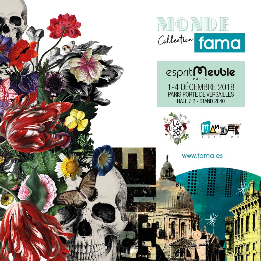 Fama will be present one more year at Esprit Meuble Paris. This will be their sixth consecutive participation in the Parisian fair dedicated to furniture professionals. In the 2018 edition, Fama will exhibit their brand new "Monde Collection", a collection of exclusive sofas and fabrics including collections "La Ligne 29" and "Wander Edition".