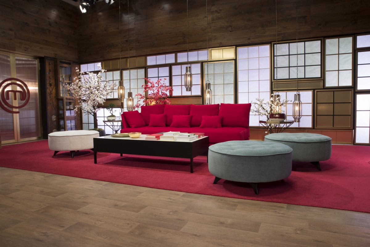 At the end of each programme, the TV host Eva González has a talk sitting on the Pacific sofa with the contestant who must leave Masterchef's kitchens. The elimination area, in addition to the red sofa has also three footstools, two in blue and one in white. In this third edition of Masterchef Celebrity, we find numerous celebrities who get into the world of cooking and have taken the show to be audience leader on the first day of broadcast.