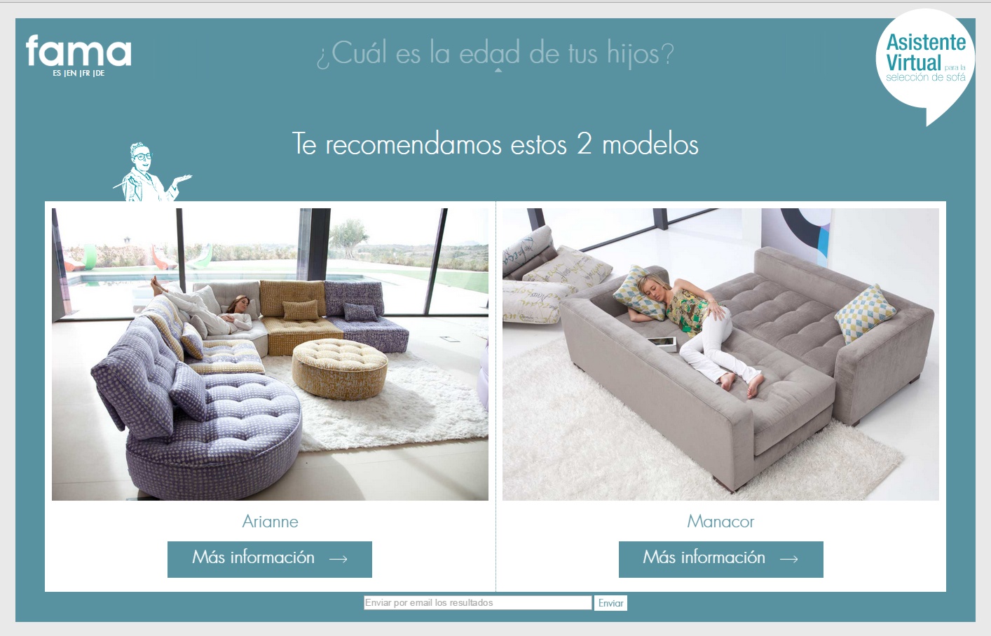With some simple questions, the Fama Virtual Assistant will find the sofa of your dreams.