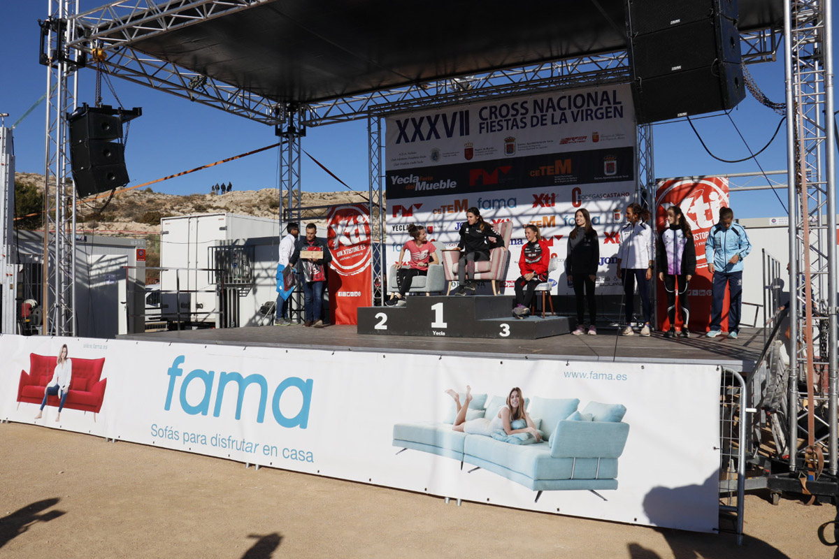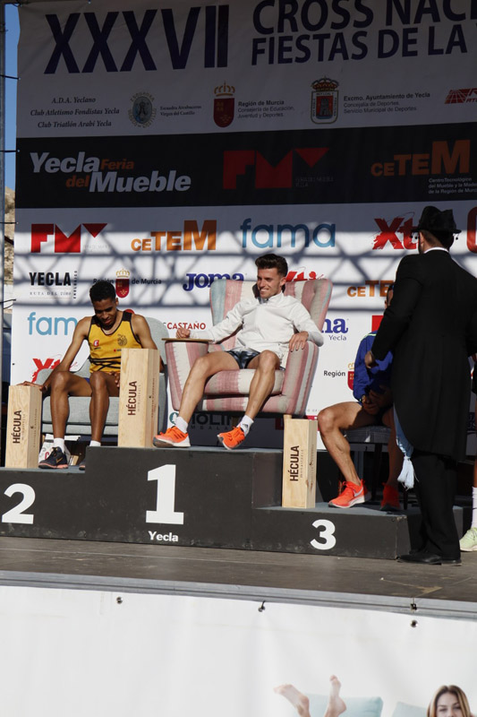 El pasado domingo 15 de diciembre se celebró la 37 Edición del Cross Nacional Fiestas de la Virgen de Yecla 2019 con gran ambiente en las instalaciones del complejo deportivo Juan Palao. Durante la soleada mañana, se disputaron las pruebas de las diferentes categorías para rematar la jornada con las pruebas absoluta femenina y masculina, siendo Carlos Mayo y María José Pérez los ganadores absolutos. Este año y como novedad, el podio contó con carácter solidario y se sortearon los sillones al finalizar las pruebas, entre todas las personas que adquirieron una papeleta a beneficio de Cáritas. Un podio con sillones que se ha convertido en un clásico del Cross de Yecla, donde los atletas pueden reponerse del esfuerzo sentados cómodamente en los sillones mientras le entregan los diferentes trofeos.