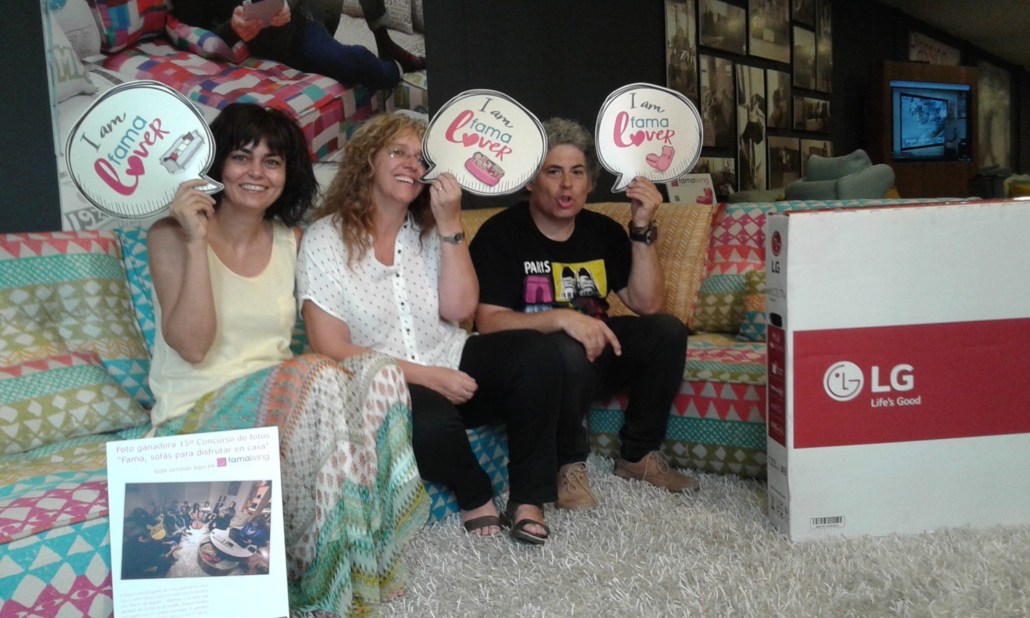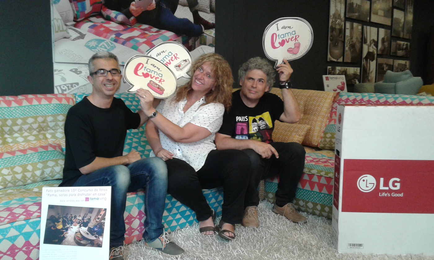 Hace unos días nuestros amigos de Famaliving Granollers realizaron la entrega de la TV elegida como premio por los ganadores del 15º Concurso de fotografía “Fama, sofás para disfrutar en casa”. Los autores de la imagen ganadora “¡Hay sitio para todo y para todos! , se mostraron muy contentos y entusiasmados con el premio, que podrán disfrutar en su Arianne Love. Toni y Pili de Famaliving Granollers, nos envían estás simpáticas fotos con los premiados.