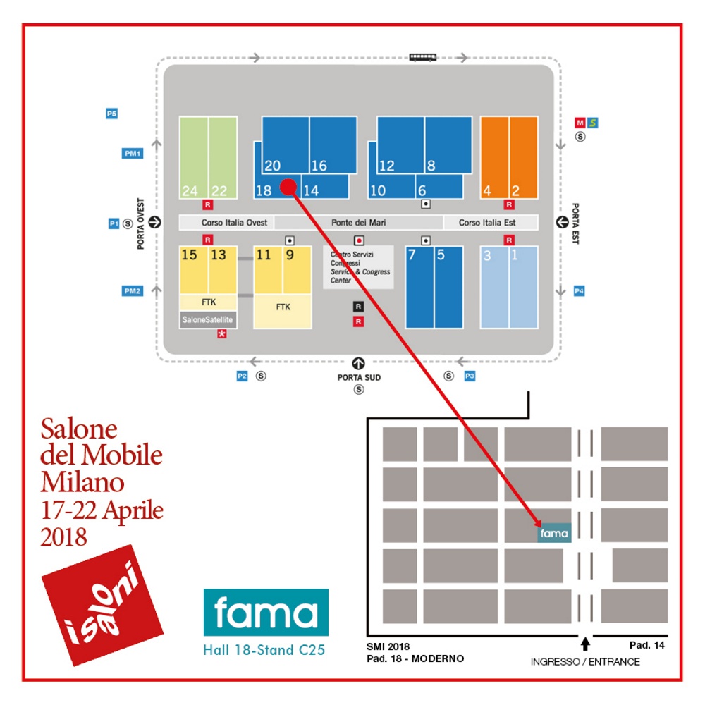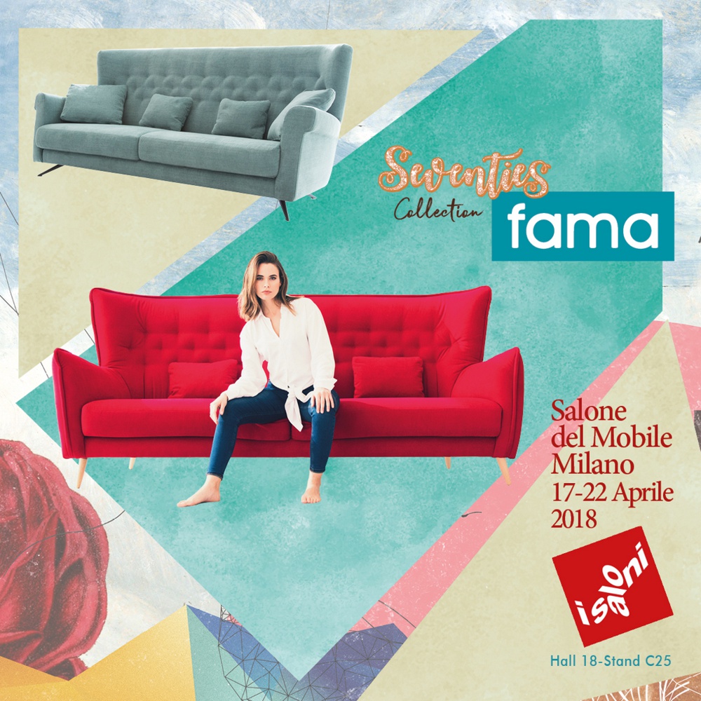 Fama estará presente un año más en el Salone del Moblie Milano – Isaloni que se celebrará del 17 al 22 de abril en Milán. En esta ocasión Fama, varía ligeramente la ubicación anterior y aunque mantiene el Pabellón 18, podremos encontrar el stand en el pasillo central que comunica con el pabellón 14 en una zona de mayor visibilidad. La nueva “Seventies Collection” que tan buena aceptación está teniendo, estará representada en Milán por los sofás Nina&Simone, el programa modular Nadine y el sofá relax Avalon, además de los “Best Sellers” de nuestro catálogo presentados con las nuevas tapicerías 2018.