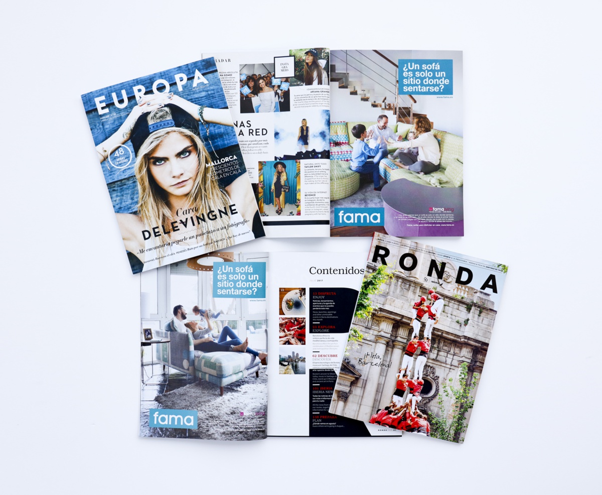 Durante los meses de verano Fama se sube de nuevo a bordo de los vuelos de Iberia y Air Europa. Nos podéis encontrar en las páginas de las revista Ronda y Europa con la campaña ¿Un sofá es solo un sitio donde sentarse? Arianne Love, Helsinki o Mynest son algunos de los sofás y sillones que podréis ver en los próximos números. Todas las imágenes de la campaña están protagonizadas por los propios trabajadores de Fama junto con algunos de sus familiares y están realizadas íntegramente en sus propias casas.