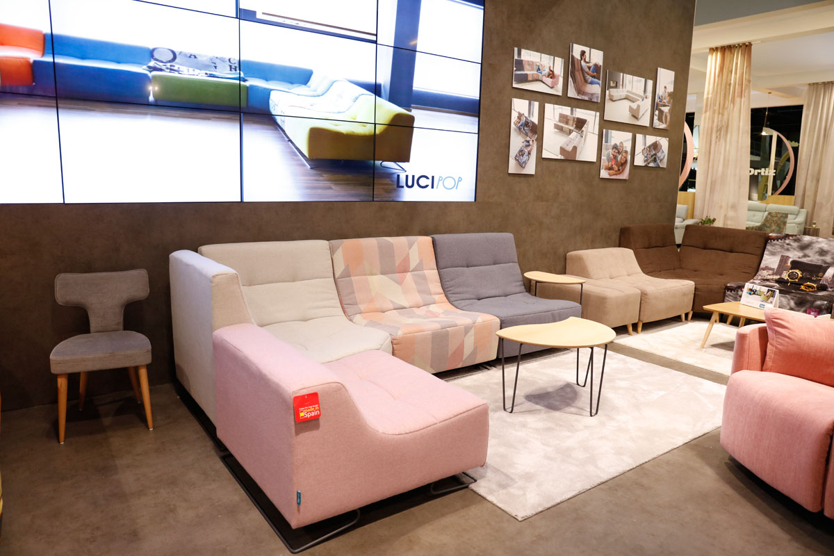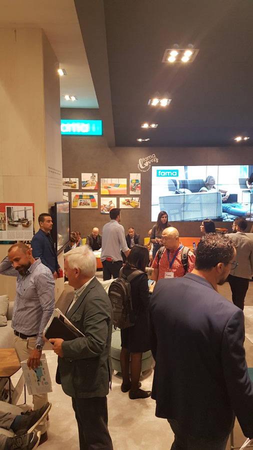 Fama presentó su nueva colección “Monde Collection” en las recientemente finalizadas Ferias del Mueble de Yecla y Hábitat Valencia. Una semana intensa que incluyó la presentación de los nuevos diseños así como las nuevas colecciones de tapicerías. Luci Pop es el programa modular de “Monde Collection” viéndose con las diferentes variantes de las que dispone, combinando respaldos altos y bajos, pata madera o pata metal, tapizados en varias de las nuevas colecciones de tapicería y con la posibilidad de elegir fundas, hace que los consumidores puedan tener multitud de opciones. Los nuevos sofás Dalí y Gala se unen al catálogo de sofás cama, aportando una línea de diseño complementaria a las existentes. La nueva colección incorpora una nueva línea de taburetes tapizados tanto en pata madera como metal.