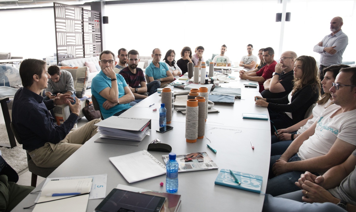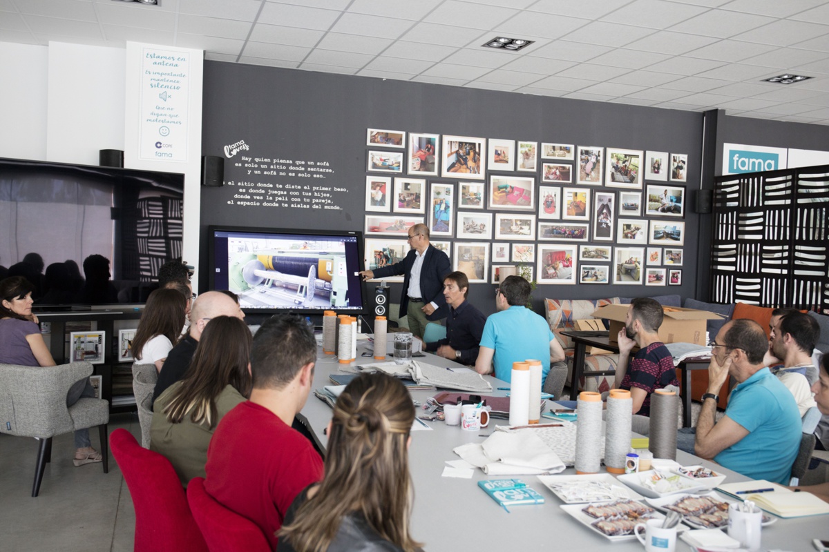 Hemos recibido la visita de nuestros amigos de Crevin Fabrics que nos han explicado de primera mano, todos los procesos que intervienen en la elaboración de tapicerías. También hemos podido conocer de primera mano, los diferentes materiales utilizados para la confección de tejidos, así como los diferentes acabados. Una mañana muy didáctica que ha servido para ampliar conocimientos referentes a las tapicerías y resolver algunas dudas. Gracias a Jordi, Pep, Miguel Angel y Franc por vuestra visita!