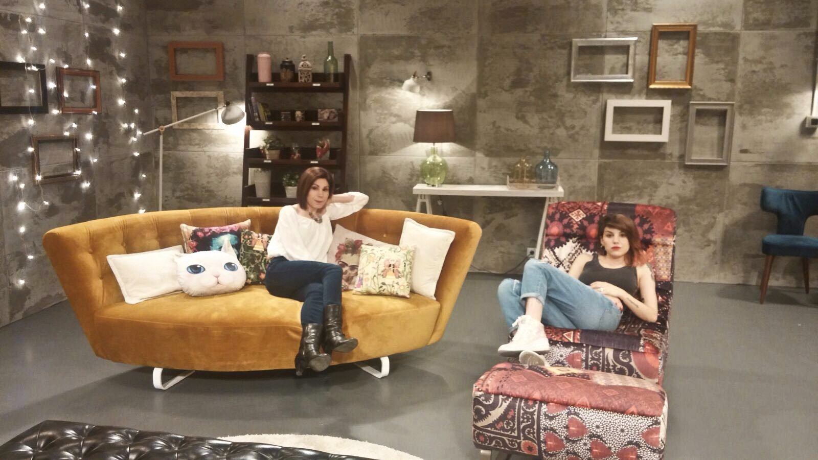 Las entrevistas se realizan en un clásico de nuestro catálogo “La caracola” que para la ocasión está tapizada con tonos azules de la Vintage Collection. También podremos ver el sofá Lulu en tonos ocres, unas sillas Mili&Lalo, y un MySoul muy llamativo.