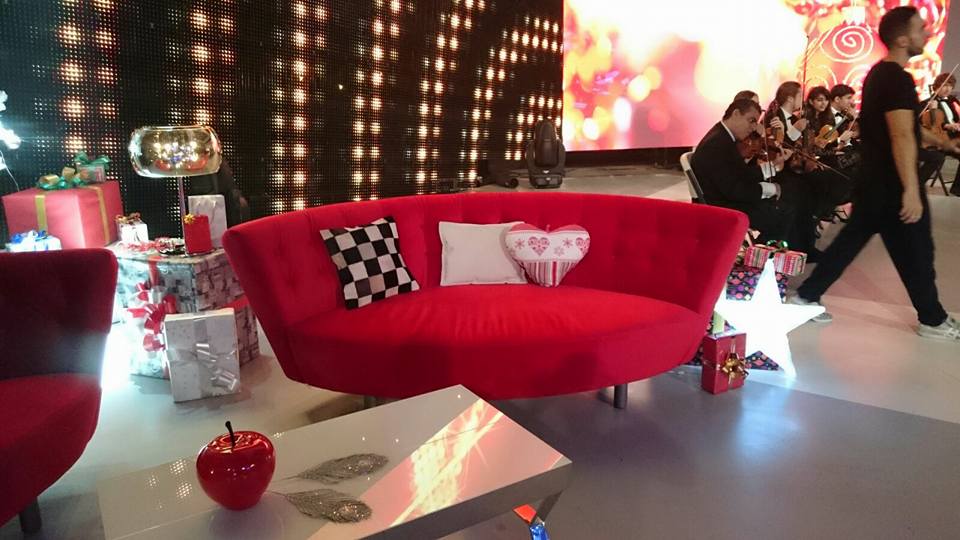 Fama estuvo presente en la pasada gala de nochebuena de Telecinco “La noche en Paz”. Dos sofás Lulu en color rojo, dieron el toque de colorido y elegancia en una noche tan especial.