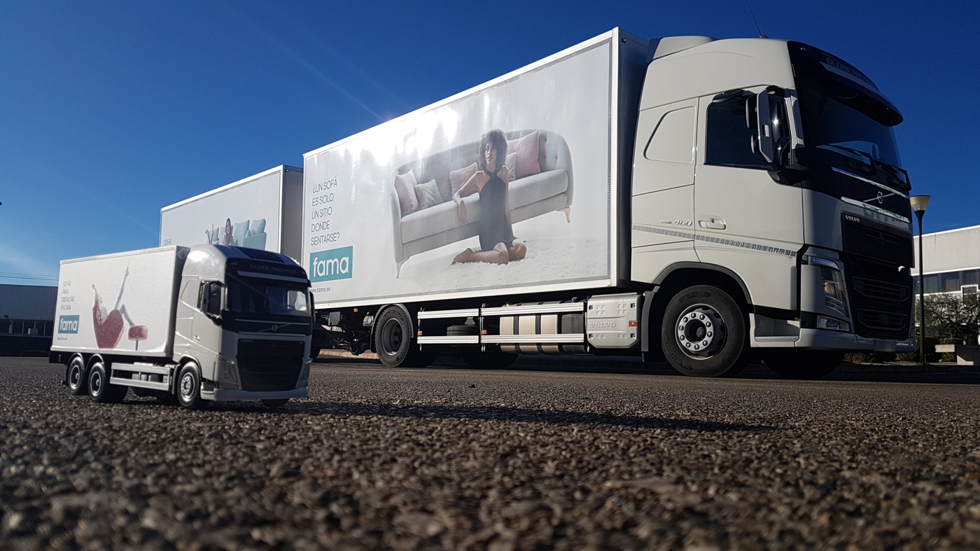 Fama ha actualizado la imagen de sus camiones con nuevas creatividades. Se pueden ver diferentes imágenes de algunos de los modelos más representativos de Fama, como son Lenny y Pacific junto con una espectacular imagen del sofá Simone tapizado en color rojo. Unos camiones que ya van recorriendo toda la geografía, luciendo nuevos diseños.