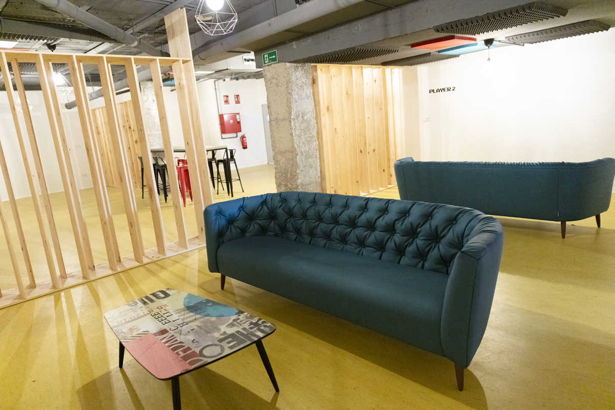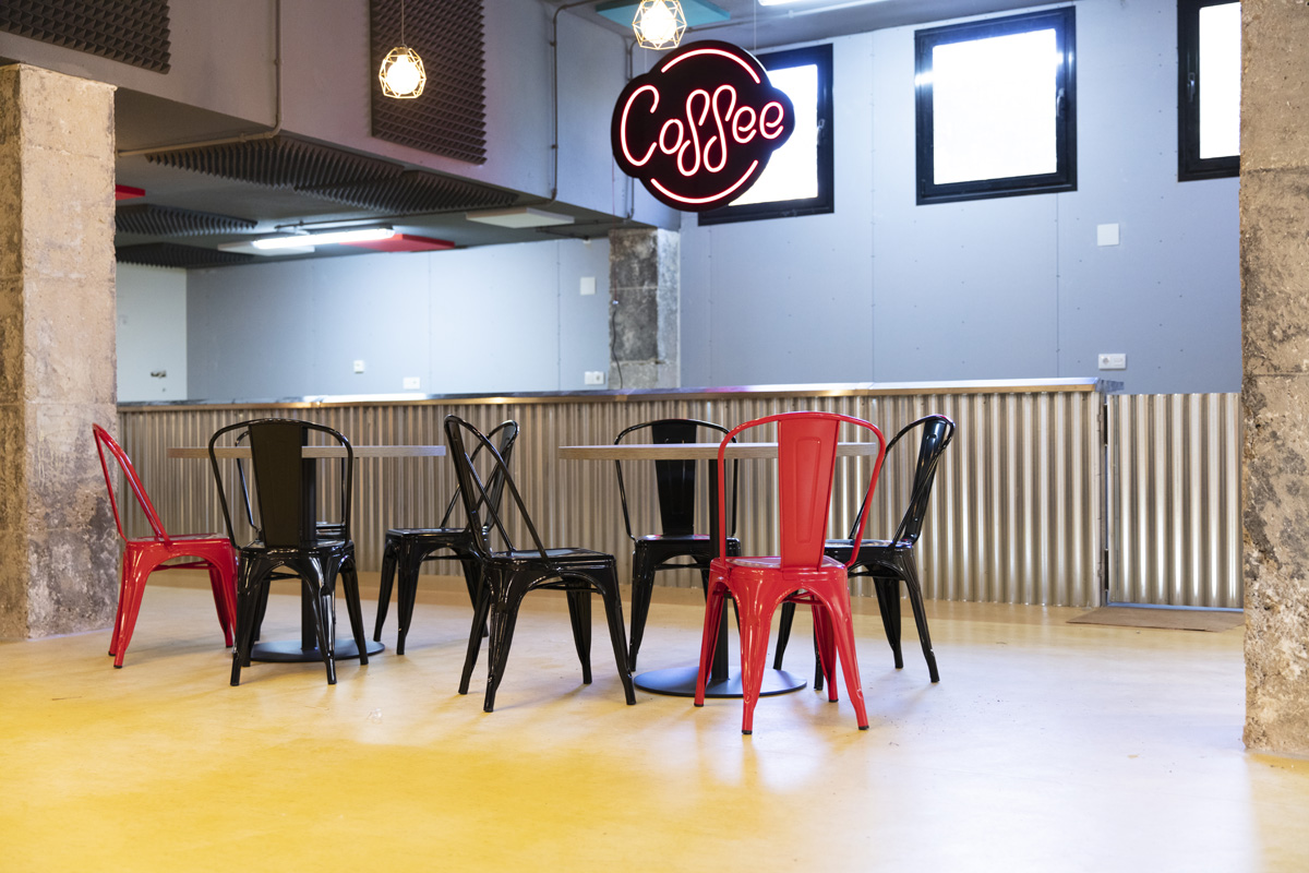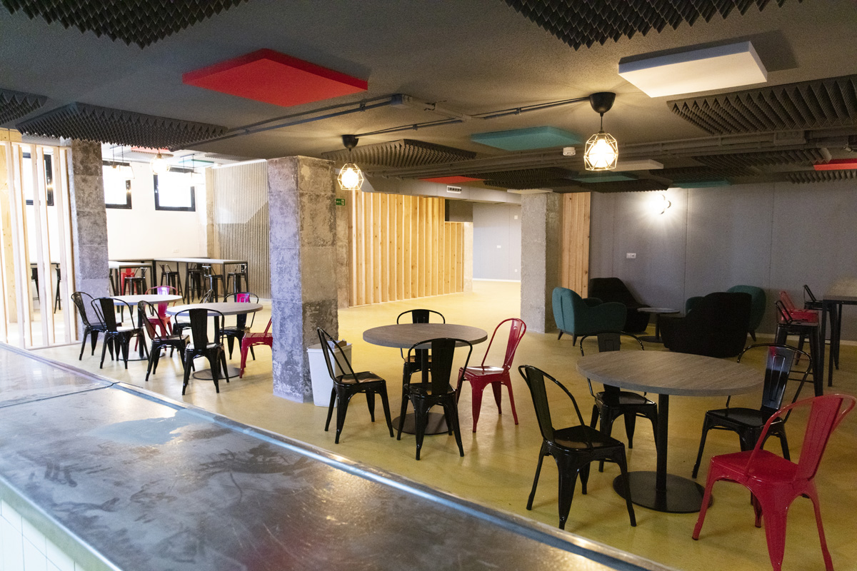 Tras una licitación pública, Fama ha sido la encargada de amueblar diferentes zonas del edificio “Cazadores” que a partir de ahora estará destinado a los jóvenes de Yecla. Este ha sido un proyecto global de Famasolutions que, además de incluir algunos modelos del catálogo de Fama, contiene diferentes sofás y sillones diseñados para la futura zona de juegos. Además de los diferentes tipos de asiento, la instalación incluye mesas altas con taburetes, mesas y sillas para la zona de cafetería, así como toda la cartelería y señalética que viene cargada de un toque desenfadado y gamberro. Los paneles de aislamiento acústico de distintos colores fijados al techo, así como las taquillas con contraseña, son algunos de los elementos que completan el proyecto.
