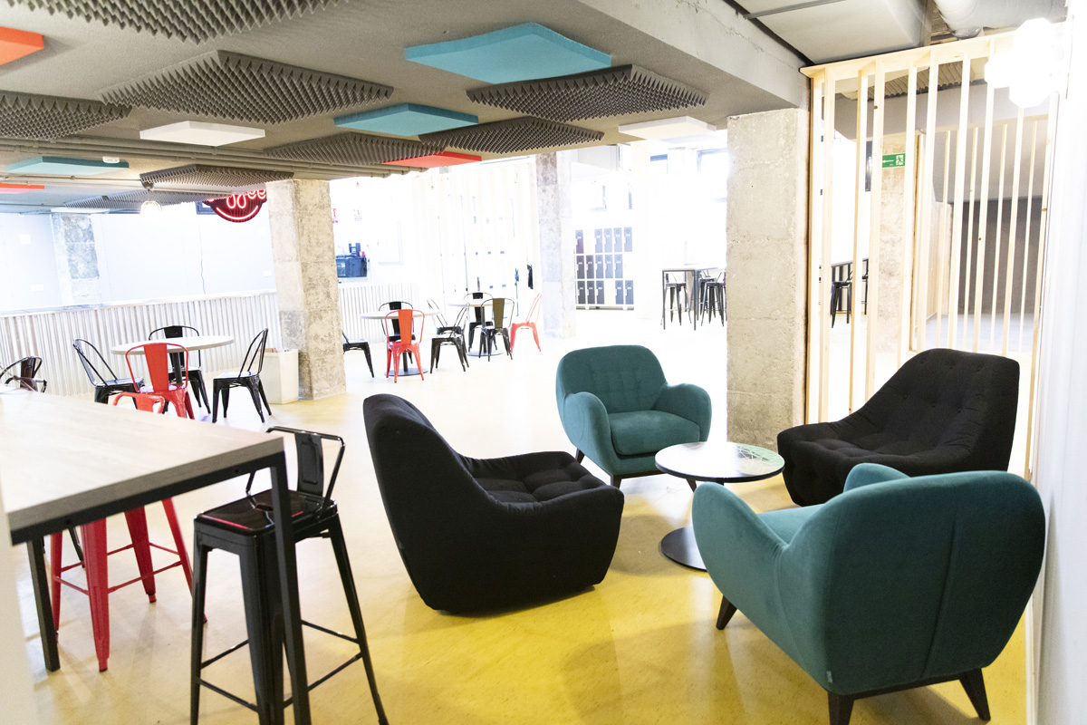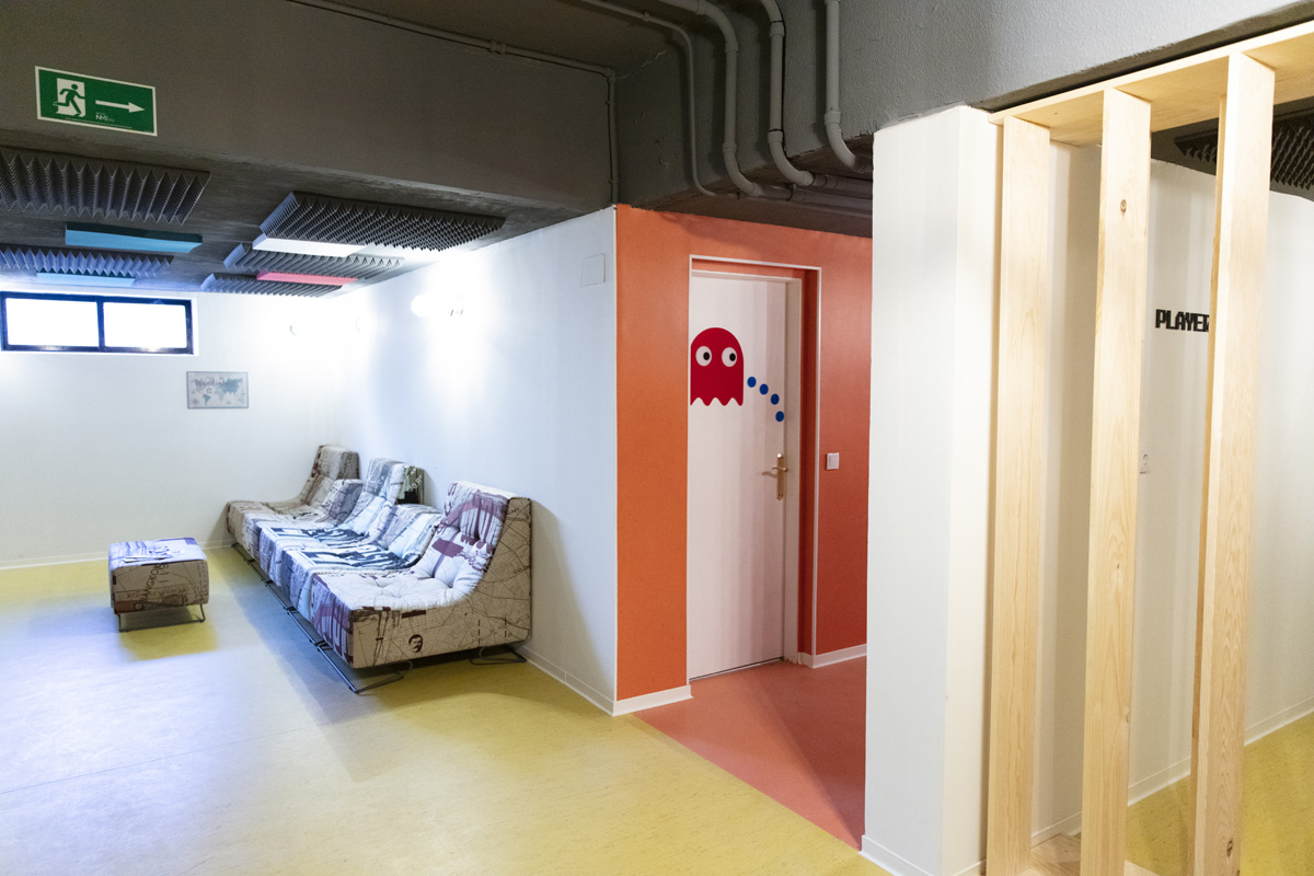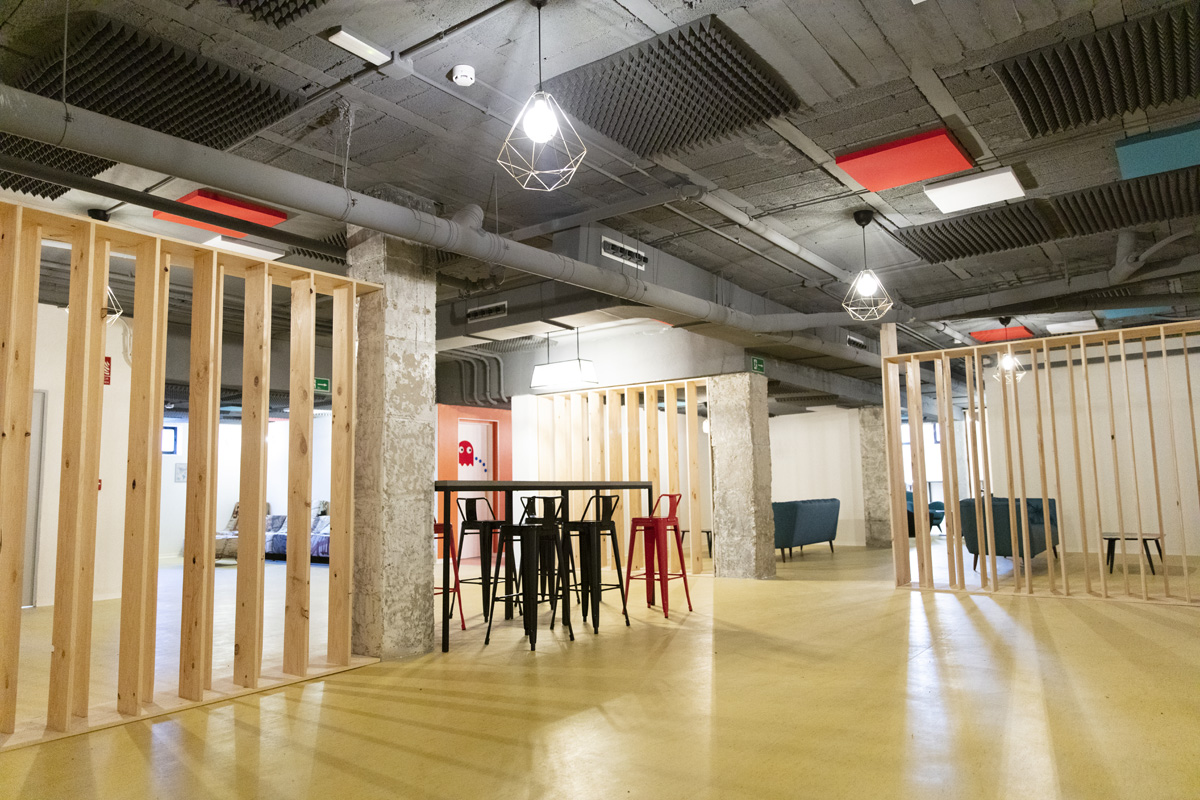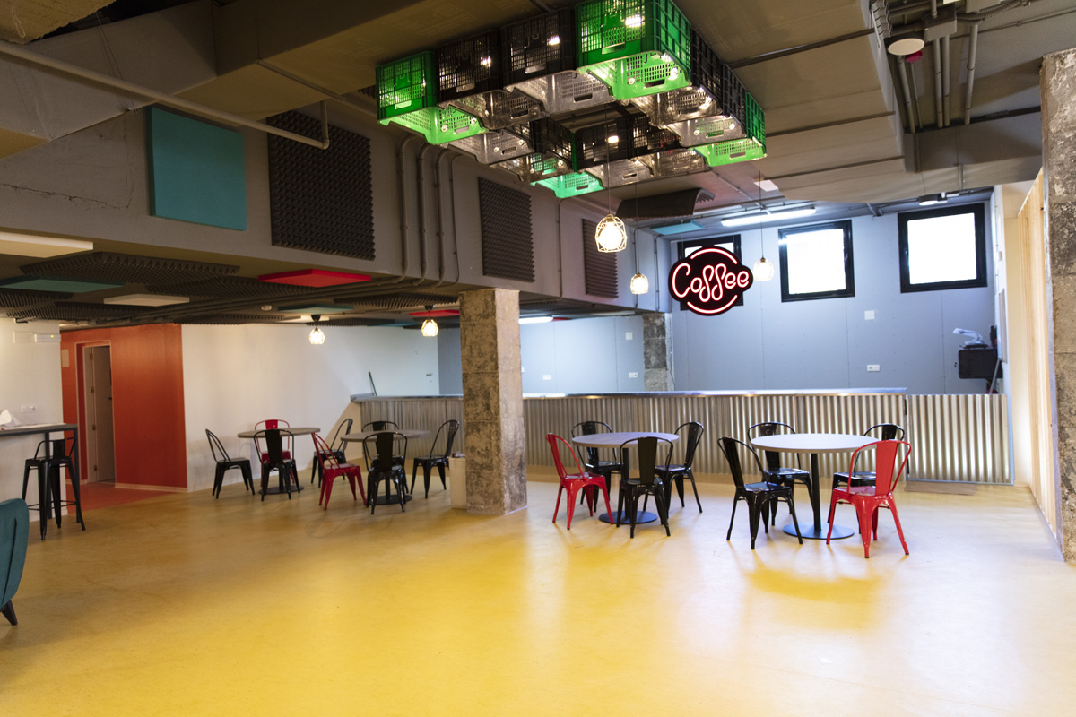 Tras una licitación pública, Fama ha sido la encargada de amueblar diferentes zonas del edificio “Cazadores” que a partir de ahora estará destinado a los jóvenes de Yecla. Este ha sido un proyecto global de Famasolutions que, además de incluir algunos modelos del catálogo de Fama, contiene diferentes sofás y sillones diseñados para la futura zona de juegos. Además de los diferentes tipos de asiento, la instalación incluye mesas altas con taburetes, mesas y sillas para la zona de cafetería, así como toda la cartelería y señalética que viene cargada de un toque desenfadado y gamberro. Los paneles de aislamiento acústico de distintos colores fijados al techo, así como las taquillas con contraseña, son algunos de los elementos que completan el proyecto.