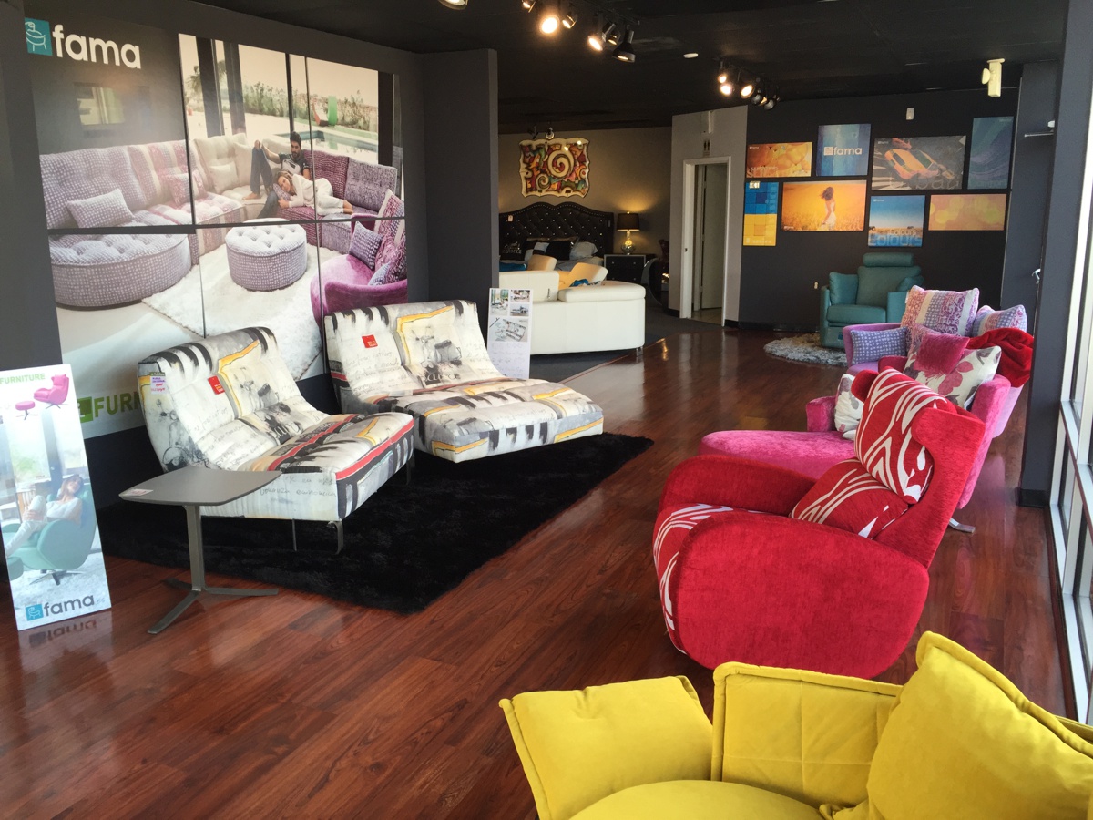 I-Furniture cuenta con una exposición de gran luminosidad donde se realza el colorido y diseño de nuestros sofás y sillones. Sofás “Made in spain” que están teniendo una gran aceptación entre el público estadounidense.