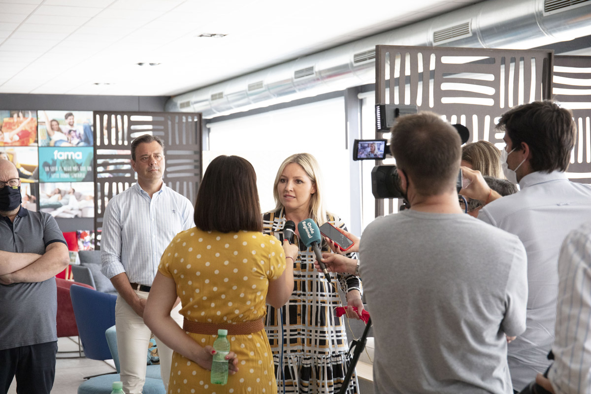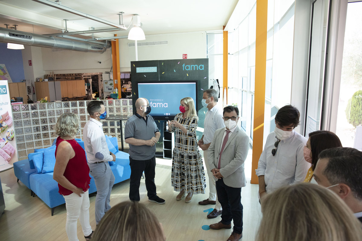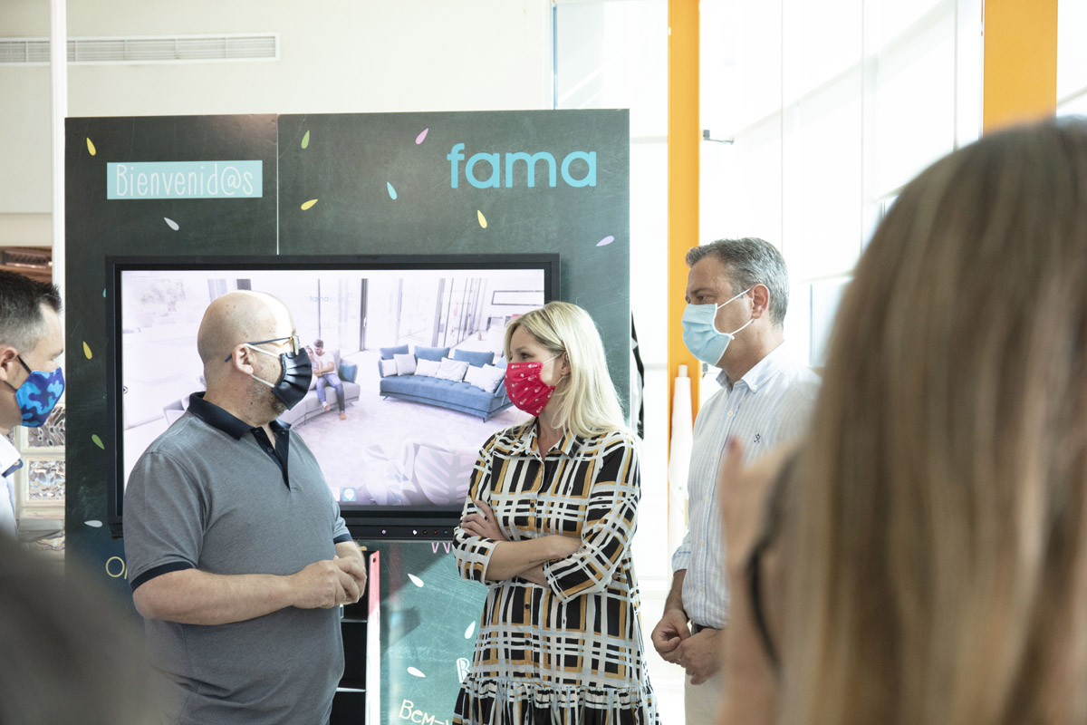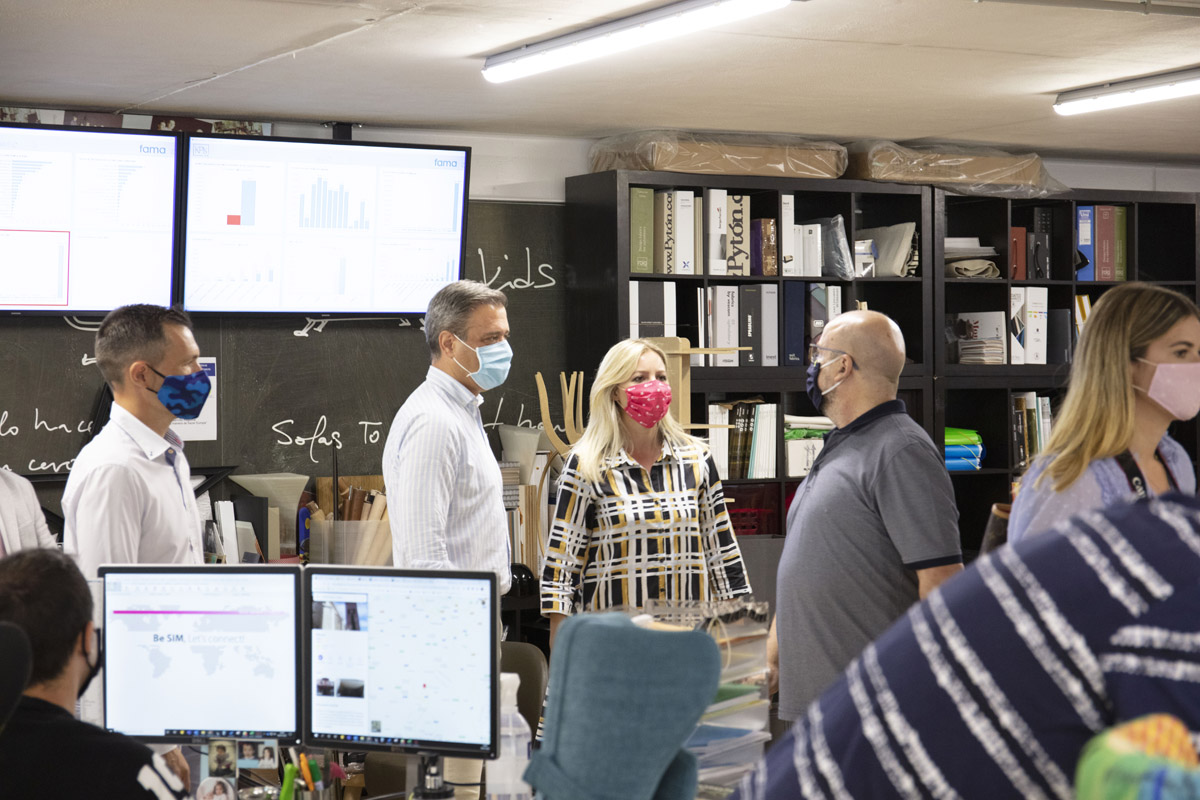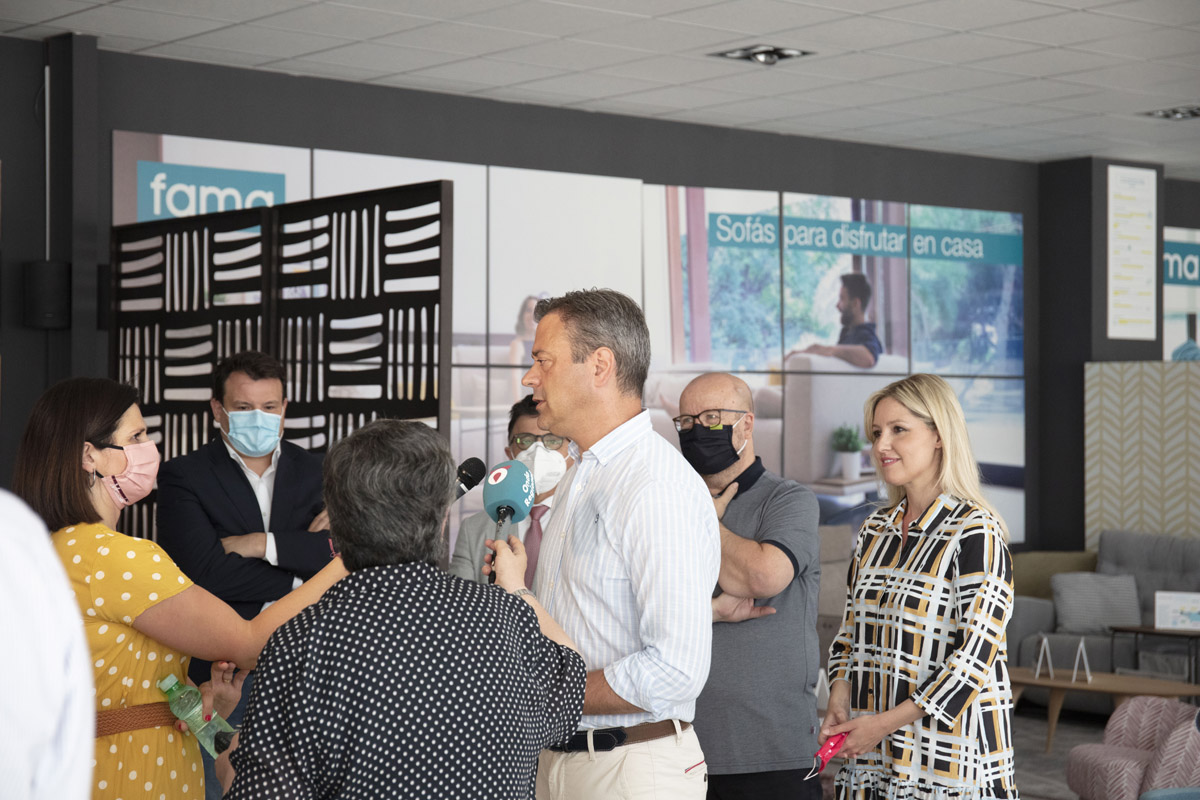 Ayer día 6 de julio recibimos en Fama a la Consejera de Empresa, Industria y Portavoz de la Región de Murcia, Ana Martínez Vidal que además visitó varias empresas de Yecla con el fin de conocer in situ la actualidad industrial del sector del mueble, así como reconocer la labor que se ha estado realizando en Yecla sobre la fabricación de mascarillas. Félix López Gil en representación de Fama, ejerció de anfitrión en una calurosa mañana donde la consejera, vino acompaña de Marcos Ortuño Alcalde de Yecla, Diego Rodríguez-Linares director del Instituto de Fomento (Info), José Antonio Ortega presidente de AREMA y Patricia Cuadrillero Secretaria General de AREMA. Varios medios de comunicación estuvieron presentes en las instalaciones de Fama, recogiendo las impresiones de la Consejera de Empresa e Industria, el Alcalde de Yecla, el presidente de AREMA y Félix López Gil de Fama.