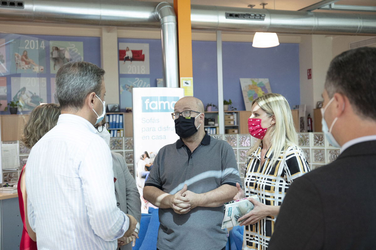 Después de un recorrido por las instalaciones, conocieron de primera mano el proceso productivo de mobiliario tapizado, así como la fabricación de mascarillas. La mañana tuvo un intercambio de impresiones y de propuestas, con el único fin de conseguir un sector más fuerte ante situaciones imprevistas como la vivida recientemente a causa del Covid19.