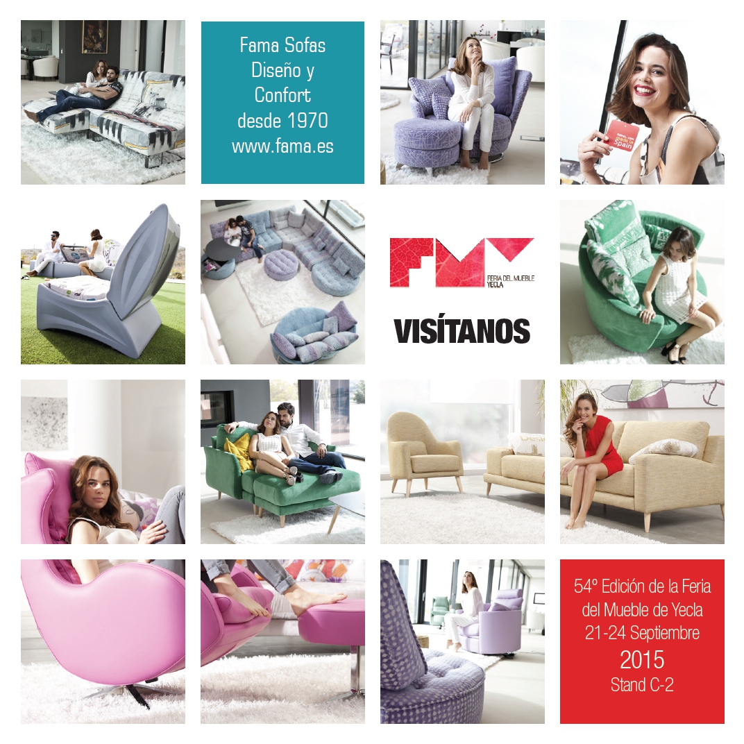 Fama sera présente dans la 54ème édition de la Foire du meuble de Yecla qui se déroulera du 21 au 24 septembre 2015. Un changement de date comparée à celle de l’année précédente, la foire de Yecla se consolide pendant le mois de septembre et Fama continue une année de plus à être fidèle au rendez-vous de la foire de sa ville. Sur le stand C2, vous pourrez voir la collection 2015 des canapés, fauteuils, chaises et mobilier d’extérieur, conjointement avec les canapés classiques de son catalogue.