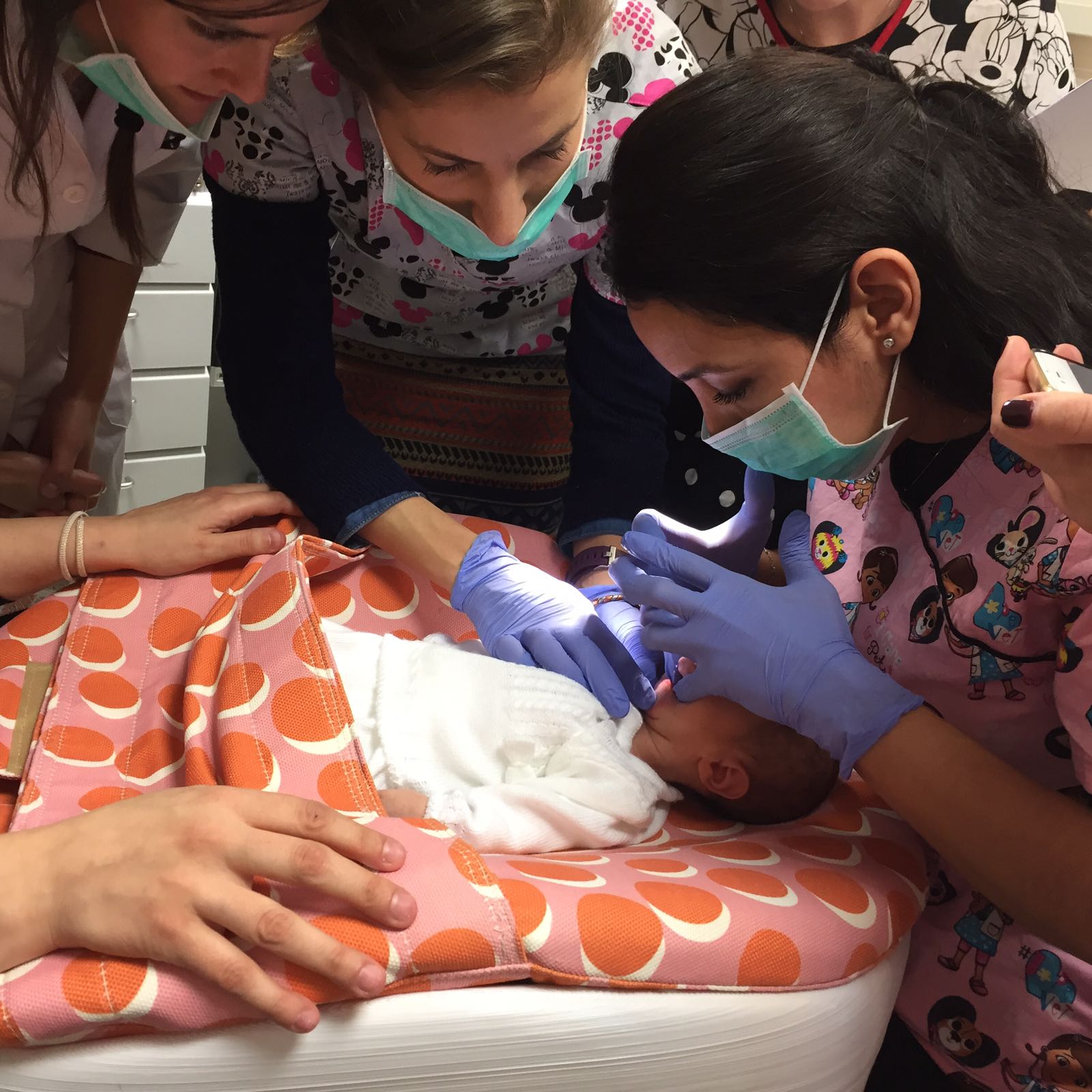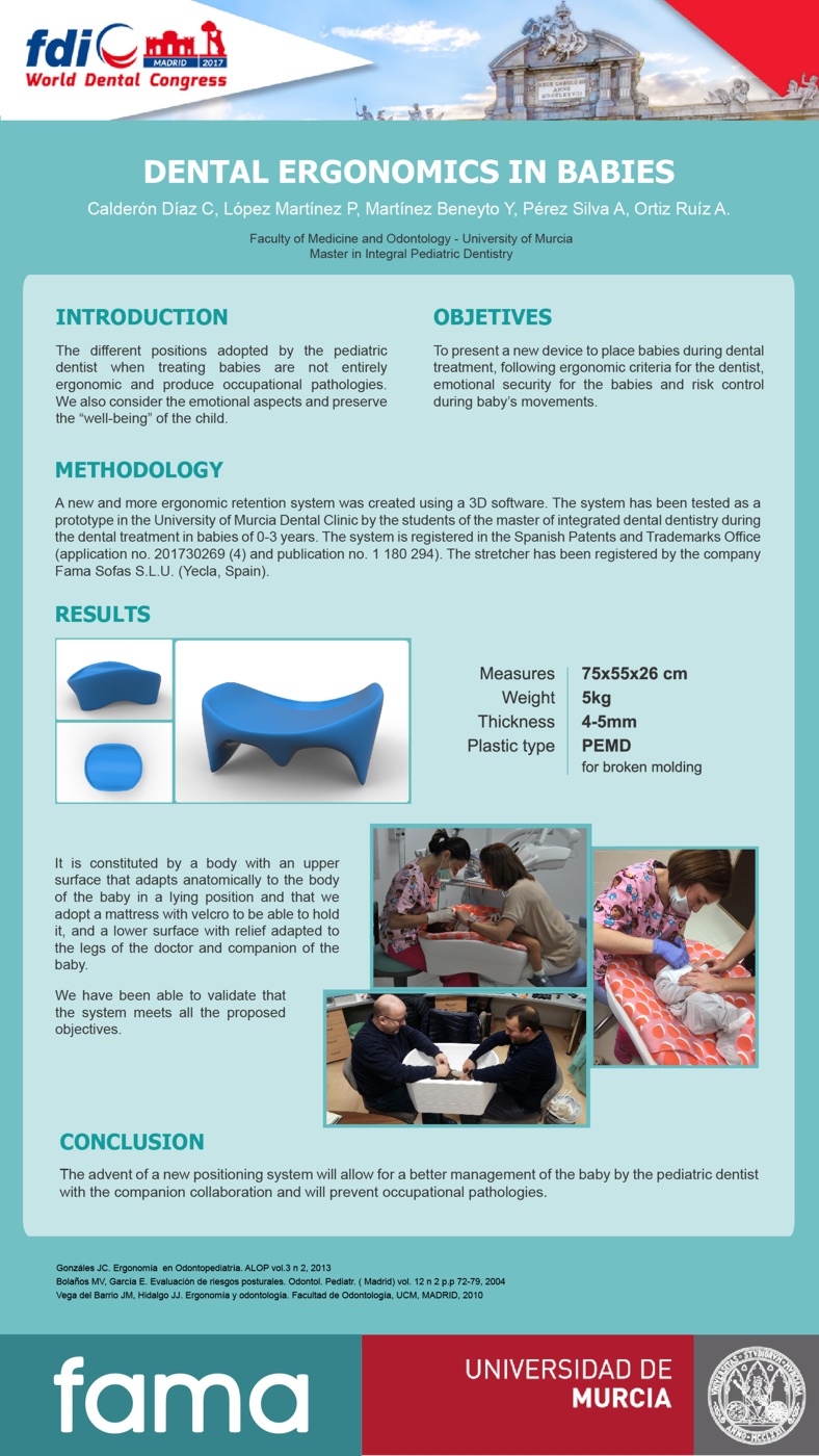 La doctoresse Paloma López et l'équipe du master de pédodontie de l'Université de Murcie, ont proposé. pour couvrir le besoin qui existe à l'intérieur du service de pédodontie en particulier, et les services chirurgicaux en général, la création d’un brancard afin de permettre la réalisation des traitements aux bébés.