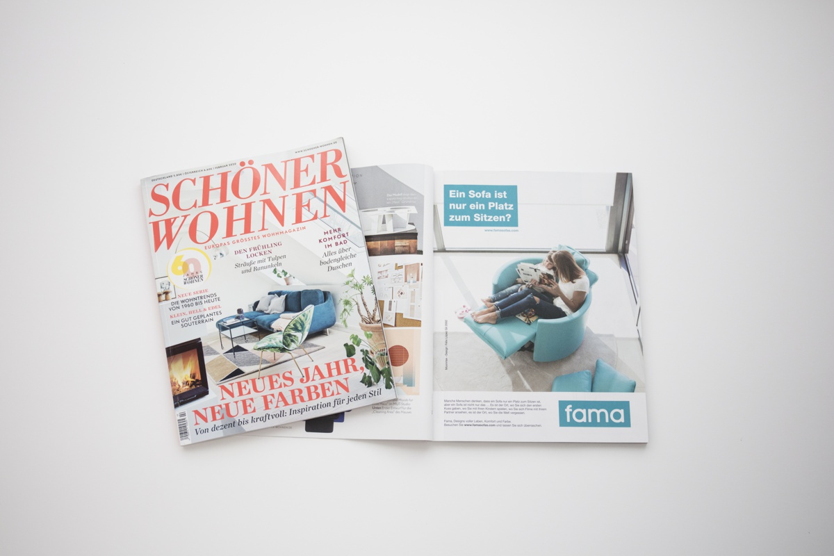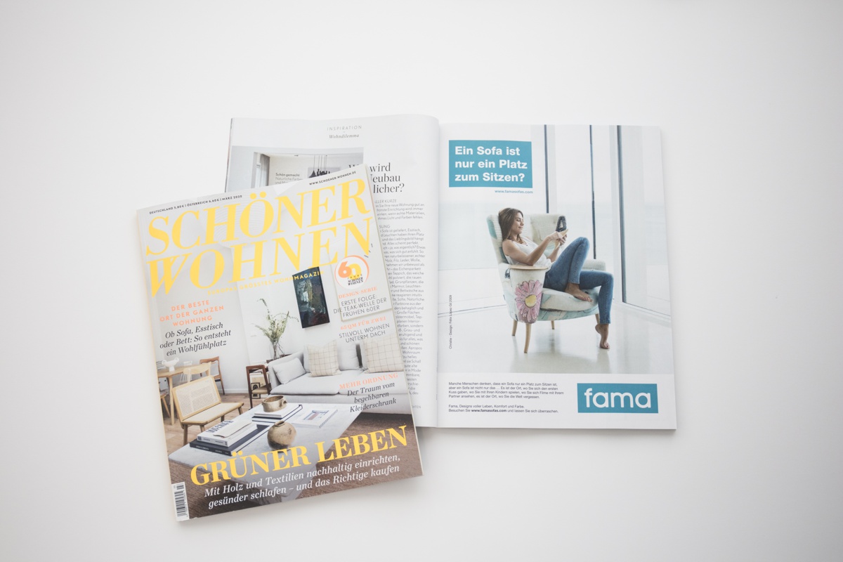Fama ne cesse de croître sur le marché allemand. Durand cette année 2020, Fama sera présent dans l'un des plus importants magazines liés au secteur de la décoration en Allemagne : Schöner Wohnen. Tout au long de l'année, vous pourrez voir différentes images des créations de Fama, parmi lesquelles figurent certaines des plus vendues par la marque en Allemagne.