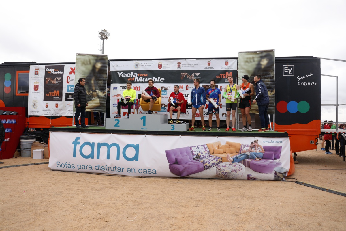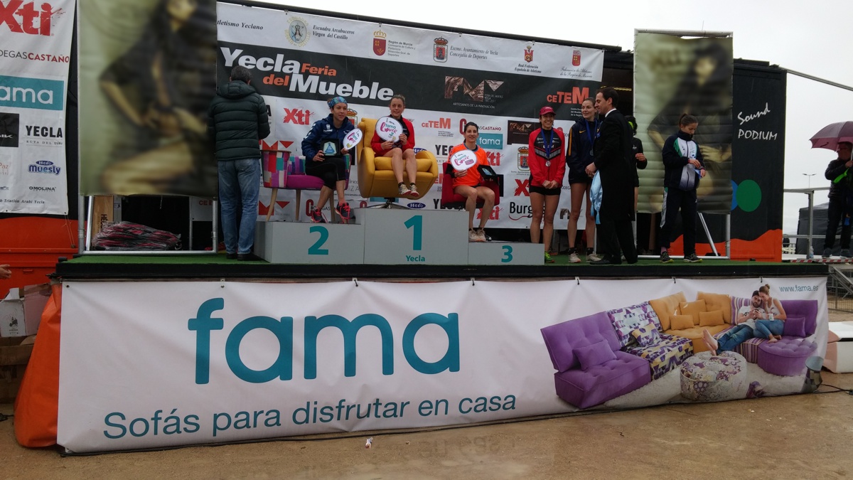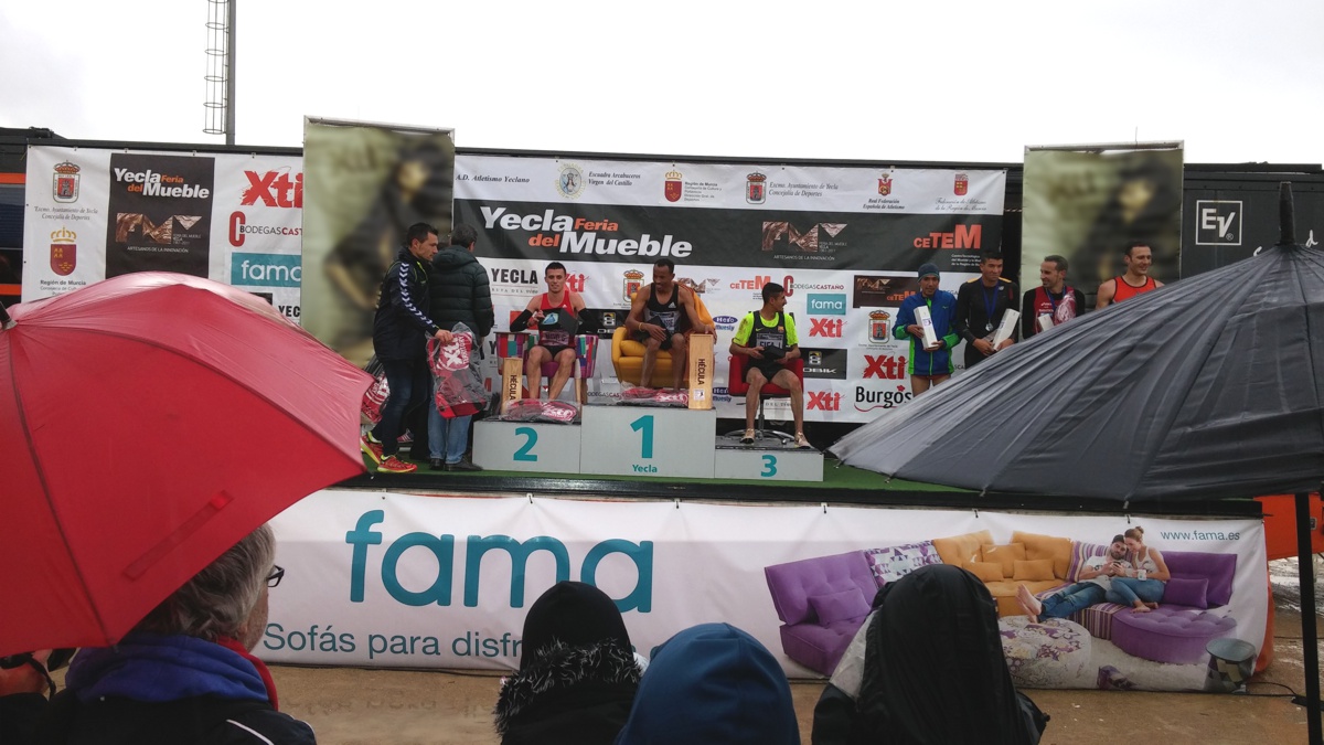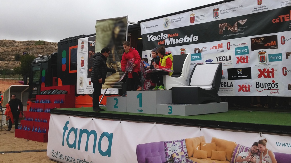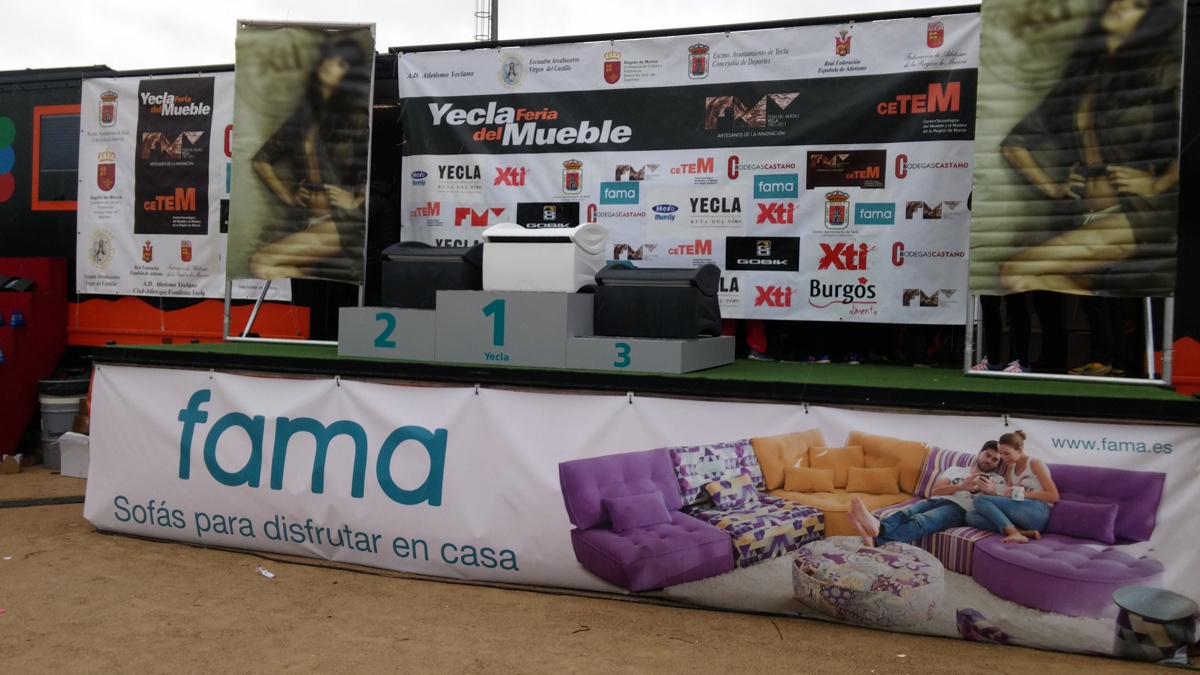 Le 18 décembre dernier s’est déroulé le cross National réalisé pour les fêtes de la Vierge de Yecla 2016. Une édition qui a été marquée par le froid, la pluie et la boue et qui ont accompagné les athlètes durant toute la matinée. De plus, cette année, ce cross avait comme nouveauté, un podium très spécial formé par plusieurs de nos fauteuils qui dans les catégories d’élite masculine et féminine ont été récompensés par ces fauteuils. Sur le podium, il y avait un fauteuil Lenny, La caracola et le fauteuil Elvis, mais en milieu de la course, ils ont été remplacé par 3 modules extérieurs de l’Arianne Garden, ces derniers nous ont permis de les refermer lorsqu’ils n’étaient pas utilisés afin d’éviter qu’ils ne se mouillent.