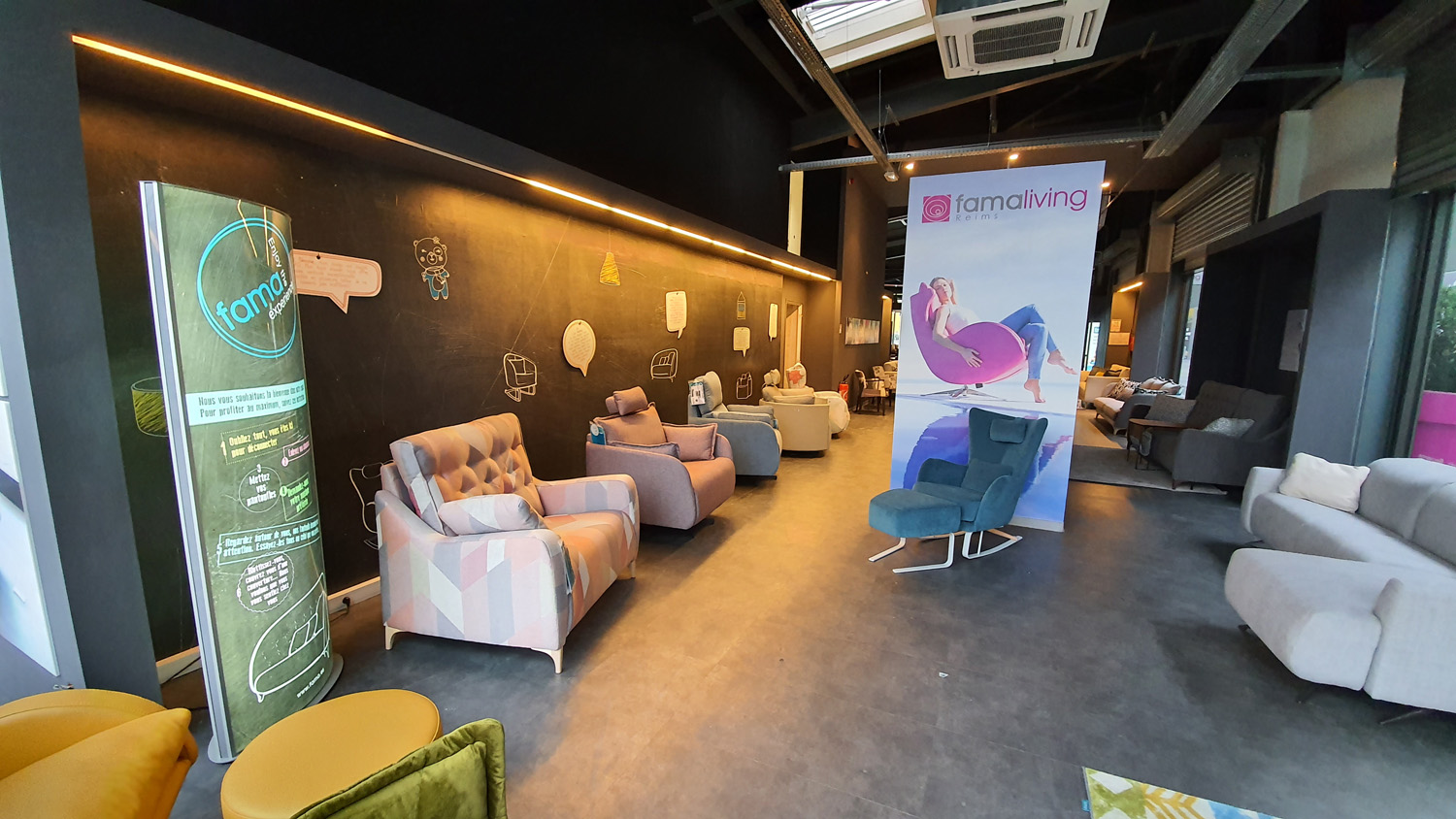 Famaliving vient d'ouvrir un nouveau magasin en France dans la ville de Reims. Ce nouvel espace est situé dans le centre commercial Champéa, qui propose une offre variée de magasins liés à la maison et à la décoration. Chez Famaliving Reims vous trouverez une grande sélection de canapés et de fauteuils du catalogue Fama ; vous serez conseillés par de grands professionnels et des "Famalovers" depuis plusieurs années. Un espace très agréable dans lequel vous apprécierez le hall central et les éléments décoratifs qui rendent la visite plus agréable. Famaliving arrive à Reims comme une excellente option à prendre en compte pour ceux qui cherchent à acheter leur nouveau canapé.