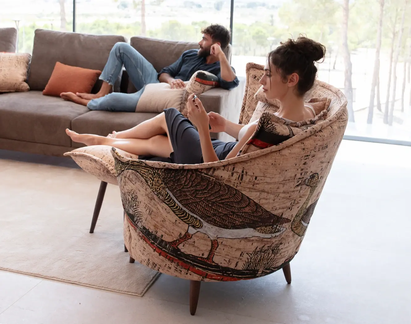Es difícil crear nuevas tipologías de sillones que ofrezcan propuestas innovadoras. Volta se eleva del suelo sobre cuatro patas inclinadas, y sin embargo, gracias a un ingenioso sistema, puede girar libremente.